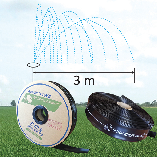 Flow Rate: 18 L/min & 10 m Spray From: 6 cm Flat width: 6 cm Diameter: 38 mm Wall Thickness: 0.22 mm Roll Length: 200 m Optimal pressure: 0.5 bar Bursting pressure: 0.9 bar